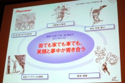 最後に同社は2015年に向けた「次のパイオニアを、はじめよう 2015ビジョン」を発表した。「今日発表した中期事業計画は、そのビジョンへの道筋を示すものと言える」と語る小谷社長。そのキーワードを「街でも家でも車でも、笑顔と夢中が響き合う」と発表した。