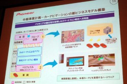 さらに、地図情報やプローブ情報などの同社の強みを活かした展開も行う。まず、スマートフォンを活用したカーナビを提案。パイオニア自社アプリ、あるいはサードパーティーによるアプリケーションをインストールした各社のスマートフォンなどに、地図情報やプローブ情報を提供したり、スマートフォンに対応したディスプレイオーディオなどペリフェラルの部分も充実させる考えだ。