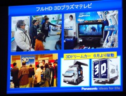 ネットワークAVの新領域を開くアイテムとして紹介されたのは「フルHD 3D」。既に発売開始されている3DTVについて、春の合展で50インチ以上のテレビ購入者の半数以上が3Dを選択したと紹介し好調ぶりを披露。「3Dほど百聞は一見にしかずという商品はない。フルHD 3Dのすばらしさが体感できる空間を店頭で実現し、力強い推進をお願いしたい」と呼びかけた。