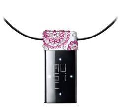「N15 JEWEL 2GB」は約26.0W×55.5H×13.0Dmmと小型で、ネックレス型イヤホンを採用したDAP。解像度120x56の有機ELディスプレイを搭載し、触れると光るタッチキー操作を採用。アクセサリー感覚のデザインになっている。