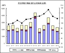また、音声機器国内出荷金額は、114億円、前年同月比94.8%と4ヶ月ぶりにマイナスとなった。カーAVC機器国内出荷金額は、526億円、前年同月比111.4%と8ヶ月連続でプラスだった。