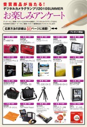 こちらの巻末に掲載されたQRコードからアンケートに答えてくださった方を対象に、「デジタルカメラグランプリ」受賞製品が当たるアンケートを実施しています!今回「総合金賞デジタル一眼」を受賞したCANONのEOS Kiss X4をはじめ、コンパクトデジカメや写真編集ソフト、カメラバッグや三脚などなど、豪華製品を多数ご用意しています。