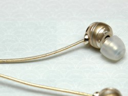 本機もアングルドイヤーピース構造を採用し、9mm径のドライバーユニットを搭載。コード長は1.2mで、SS/S/Mサイズのイヤーピースが付属する。