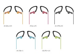 耳にかけるイヤーハンガー付きのクリップヘッドホン。カラーラインナップはオレンジ、レッド、グリーン、ブルー、ブラックの5色。