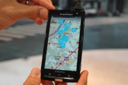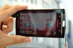 またドコモブースではゼンリンデータコムより商用化され、今年9月に評価版(無料)が開始予定のスマートフォン向け新サービス「直感ナビ」のデモも体験することができる。「直感ナビ」は検索アプリケーションをベースにAR技術を活用したナビサービスで、カメラ、加速度、方位センサー、GPS機能を搭載した端末で利用できる。通常の地図表示に加えて携帯電話を傾けるとARモードに切り替わり、その方向の店舗や施設が表示される。さらに検索したい方向に向けて携帯電話を振るだけで対象リストが表示される「投げ検索」といったユニークな機能も利用できる。