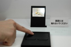 デモでは立体映像を好きな角度に調整することができ、「ゲームや教育関係などの分野で活用できる」(説明員)としている。製品化は未定。今回の試作機では3D表示のみに対応しているが、「今後2D、3Dの切り替えに対応することがハード面での課題になる」とのことだ。