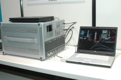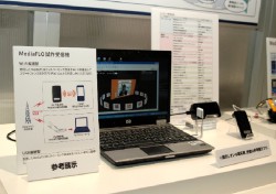 MediaFLOでも、Qualcomm社製のチューナー内蔵Wi-Fiルーター経由でスマートフォン、iPod touchで再生する方法や、USB型チューナーを使って、PCなどUSB機器で再生できることを紹介している。さらに会場にはワンセグチューナー部分にMediaFLO/ワンセグチューナーを差し替えた有線受信電波シミュレーション端末を用意し、放送の具体的なサービスイメージをつかめるようになっている。