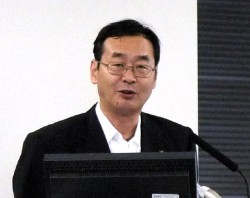 シャープ(株)執行役員 AVシステム事業本部 本部長の中村恒夫氏は、同社のBDレコーダーが、レーザーから光ピックアップ、ドライブ、システムソフトやハードまで垂直統合型で開発されていることを強調。これが、BDXL対応レコーダーを世界で初めて商品化できた背景にあるとアピールした。
