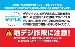 同活動では、郵便物の配達などの際に、職員が「地デジ対応はお済みですか?」といった具合に声かけを実施。声かけを行った際、地上デジタル放送を受信するための準備がまだ済んでいないことが判明した場合には、高齢者等に総務省地デジコールセンターの電話番号(0570−07−0101)を記載した名刺サイズ大のカードを手渡し、不明な点があれば相談するよう促す。