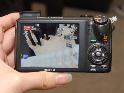 イメージセンサーは「F300EXR」と同様のものを採用し、「瞬速フォーカス」に対応。有効画素数は1,200万画素。レンズはフジノン光学式5倍ズームレンズを搭載する。焦点距離は35mmフィルム換算で35mm〜175mm相当。また本機にも「F300EXR」で採用した新手ブレ機能が搭載されている。