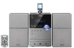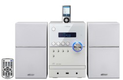 【SPEC】●実用最大出力:20W×2 ●入出力端子:iPhone/iPodドック、USB、ステレオミニ、ヘッドホン出力、コンポジット映像出力 ●外形寸法:165W×250H×226Dmm(センター部)、140W×250H×134Dmm(スピーカー部) ●質量:約2.3kg(センター部)、約1.3kg(スピーカー部)