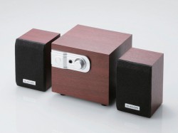 実用最大出力は合計12W(サテライト3W+3W、サブウーファー6W)。木製エンクロージャーを採用したことで、ユニットの共振を抑えて安定した再生を目指したアクティブスピーカー。