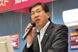続いて同社京都製作所 所長の阿部正治氏が新製品のテレビについて説明。「国内の薄型テレビ需要は順調に伸びており、中でも録画テレビの比率は急上昇中。2010年度には1,800〜1,900万台の需要のうち25%が録画テレビになると予測している。“3D元年”の到来により、対応ハードやソフトも続々とリリースされていくだろう。新モデルのMDR1シリーズは、この録画機能と3D再生、高画質・高音質機能、そして『らく楽アシスト』機能を備えた“全部入り”モデルと言える。MDR1、BHR400、BHR300の3シリーズを合わせ『録画テレビは三菱』ということで幅広く提案していきたい」と語った。