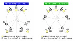 スピーカーリロケーションでは2つのスピーカー配置が選択可能。1つはITU-R推奨の5.1ch設置にサラウンドバックを足したタイプで、もう1つはサラウンド4本をほぼ均等角度に配置したタイプ。ともに、実際のサラウンドバックスピーカーがあってもなくても動作可能という。つまり、5.1ch分の実スピーカーを設置してある環境で、7.1ch相当の再生ができるということになる。