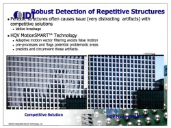「VHD2400」は240Hz駆動の、「VHD1200」は120Hz駆動のテレビに向けたフレームレートコンバーター。ピクセル単位の処理により動画内の複雑な画像やモーションの検知・処理に優れた同社独自技術「HQV MotionSMARTテクノロジー」を備えているのが特徴で、映像劣化を最小限に抑えつつスムーズなモーション、ディテール表示を可能にしているという。たとえば素早く移動する小さなオブジェクトの動きも、不正確で間違ったモーションを検知して補正し、滑らかに再生できるほか、水平、垂直、斜め方向に移動する際のジャダー(映像の揺れ)の除去、格子模様などの画像劣化除去、正確なマルチケーデンス検知などが可能だという。