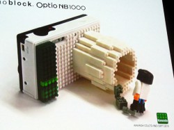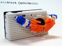 4mm×4mmという超極小サイズのブロックを組み合わせて遊ぶ「nanoblock」とのコラボレーションモデル。「Optio RS1000」をベースに、前面パネルに付属のnanoblockを装着して立体的なデザインを楽しめる。
