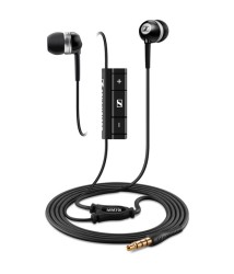 MM 70iはゼンハイザーのカナル型イヤホン「CX 400-II」がベースになっている製品。形状とサイズの異なる6種類のシリコン製イヤーピースが付属する。マイク一体型リモコンユニット「Smart Remote with Mic」が付属しており、再生・通話のコントロールと音量調整が行える。