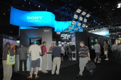 ソニーブースでは、新SXRDプロジェクターやAVアンプなどESシリーズの3D対応製品を中心に、フルHD液晶テレビの豊富なラインナップやAVセンターを用いたソリューションなどが展示された。
