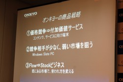 「既に市場はあるが、競争相手が少ないことをやりたい − それがスレートPCだった。コンテンツやハードは既にあるが、それを使い勝手良く変えていくことを目指す。新製品は用途別に3機種をラインナップ。Windows 7を搭載しているので既存のソフトを使えるし、USBやHDMI端子なども備えているので外部機器との接続性も高い。コンセプトは『OPEN!』。我々はツールを提供し、本機を通してさまざまな方にビジネスチャンスを作って欲しいと考えている。コンシューマーは勿論、病院での電子カルテ閲覧など法人向けにも訴求したい。また、電子書籍リーダーとしても使うことができ、ある意味電子書籍の新しい潮流を作る製品ではないかと考えている。オンキヨーはスレートPCナンバーワンメーカーを目指す。PC市場は現在1,600万台ほどだが、スレートPCがその市場をもっと大きくしてくれるだろう。今日がその最初の日だ。スレートPCと言えばオンキヨーと認知してもらえるよう、努力していきたい」と締めくくった。