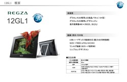 「12GL1」は解像度466×350(2D/3Dとも)・約147万画素・アスペクト比4対3のパネルを採用。コントラスト比は500対1。グラスレス3D専用レグザエンジンも搭載している。推奨3D視聴距離は65cm。こちらも3Dの視野角は左、右それぞれ15度。地上・BS・110度CSデジタルチューナーを各1基搭載する。