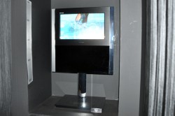 今回、20GL1は外形寸法640W×663H×105Dmmと奥行きもあり、画面下にもかなりスペースをとっている。説明員に聞いたところ、これはグラスレス3D専用CELLレグザエンジンが大きいためとのことだ。