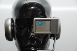 ほかにもQVGAサイズのシースルーディスプレイや、薄く、折り曲げられるフィルムディスプレイなど、「有機EL」に関する新しい技術の参考展示も行われている。シースルーディスプレイは独自技術により、シースルーながら220ppiの高精細化を実現。光取り出し方向を表字面側のみとしたことで、裏面から映像が見えず、プライバシー保護性能を高めている。フィルムディスプレイは0.3mm以下の薄型化を実現。パネル重量が0.05g/平方cmと軽量であり、曲率半径25mmの湾曲部に設置が可能。今回の展示ではリストバンド型ディスプレイの応用事例が紹介されていた。