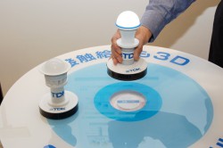 同社では今回、本技術を応用した「給電テーブル」を開発した。給電テーブルには給電コイルを内蔵し、受電コイル内蔵のランプをある程度離した距離でも点灯させるデモを公開している。同社では現在、給電/受電コイル間の距離変動影響を受けにくいチューニング技術を開発している段階であるという。