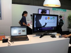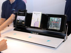 また、そのそばにはパララックスバリア方式の裸眼3Dディスプレイも参考展示。こちらは「製品化するかどうかも決まっていない。本当に参考程度に展示しているものだ」(同社説明員)とのことだった。