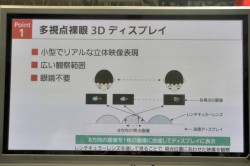 撮って触って遊べる3D技術も参考出展された。こちらは2眼式3Dカメラで撮影された写真データに視差調整を行うことで、2視点はもちろん多視点3Dディスプレイでも表示できるようになるというもの。