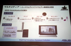 同社は、国内では主にネットブック「Eee PC」で知られているが、今回、高音質モデルをラインナップに加え、また今年1月のCESで発表されたデザインコンシャスモデルを投入するなど、高性能なモデルを積極的に訴求。プロダクトラインを強化し、ブランドポジションを高めていく考えだ。