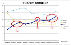 なおデジタルカメラ全体の販売台数の伸びは、1月から9カ月連続で2桁成長を記録。その要因として「今年ソニーが発売した新商品が好調な推移を見せ、市場を牽引していると考えられる」とも述べている。