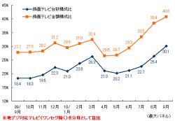 2010年9月の同ランキングで、録画機能付き薄型テレビの販売台数構成比30.1%を記録。また、販売金額では40.8%と、こちらも初めて4割の水準に到達した。