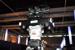 また同社は、3D撮影現場で使用する3Dカメラドッキングステーションも展示している。こちらは民生用カメラ2台など様々なカメラを取り付けることができ、さらに2台のカメラ間の距離や角度などの調整を容易に行えるのが特徴だという。