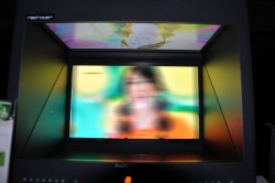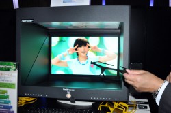 同社説明員は「画面に偏光フィルターを貼った3Dディスプレイは暗くて目が疲れやすかったが、本製品は明るいため長時間視聴でも疲労が少ない。コンテンツ製作用のディスプレイとしても適している」と語っていた。