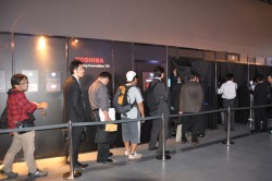 先週発表された東芝の“グラスレス3Dテレビ”が3D Fairの会場にも登場。視聴ブースには多くの来場者が列を作った。