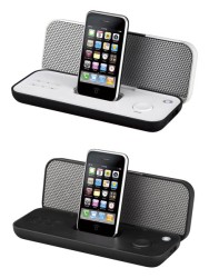 10W+10Wのアンプを内蔵し、4スピーカーシステムによる360°サウンド機能を搭載。iPod/iPhone接続後の基本再生操作は本体で行え、iPod/iPhoneの充電にも対応する。