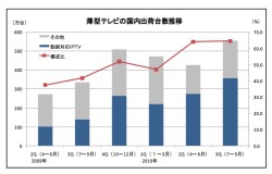さらに、2009年4月から統計を取り始めたという、動画対応IPTVの出荷実績についてもJEITAは数値を公表。薄型テレビの全出荷台数のうち、2010年4〜6月は64.1%が、同7〜9月は64.5%が、ストリーミングやダウンロードを活用するネット動画機能に対応し、2009年に比べ構成比が伸びていることが明らかになった。