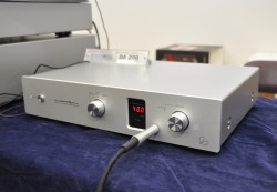 「DA-200」は、ラックスマンのコンパクトなコンポーネント“200シリーズ”にラインナップする、192kHz/24bit対応DACとアナログアンプ回路を搭載したDAコンバーター。ラックスマンのフォノイコライザーアンプ「E-200」、ヘッドホンアンプ「P-200」と同様、いよいよ11月に発売を控え、ヘッドホン祭会場で試聴デモが行われていた。