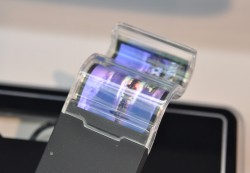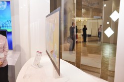 サムスンの3V0型モデルはアクティブシャッターメガネによる3D表示が行える。パネル解像度は1,920×1,080画素。展示説明員によれば、テレビなどAV機器での展開を想定しているが、実際の商品化の時期については決まっていないという。本機以外にも14V型の3D表示対応試作機や、折り曲げられる2.8型のフレキシブルディスプレイなど、同社の多彩な有機ELソリューションが紹介されている。