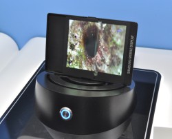 同社のディスプレイはインテグラルイメージング(光線再生方式)方式とレンチキュラーシートの組み合わせによる裸眼3D表示に対応しており、高精細、広視域を特徴としているほか、レンチキュラーシートを採用したことで表面輝度の低下を抑制し、低消費電力で3D表示の際も一般のディスプレイと変わらない明るさで表示が可能な点が特徴であるという。