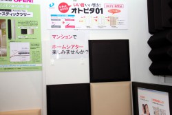 大建工業は、オーディオルームやホームシアタールーム向けの防音パネルや調音パネルなどを多数展示。