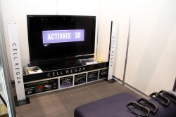 東芝の展示は非常にシンプルで、“CELL REGZA”「55X2」1台を展示し、3D映像を楽しむことができる。CELL REGZAの新たなフラグシップモデルだけあって、注目度はバツグン。来場者がひっきりなしに3Dメガネをかけ、本機の映像を確かめていた。