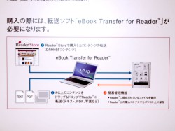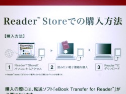 利用イメージとしては、PCのウェブブラウザーでReader Storeサイトにアクセスし、書籍を購入した後、専用の転送ソフト「eBOOK Transfer for Reader」を使って、Reader本体に書籍ファイルを転送する。また、ソフトを使ってReaderからPCに購入コンテンツを戻すこともできる。
