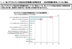 地デジ放送を視聴できる世帯の割合は85.1%だが、実際に視聴している世帯は78.4%に留まっている。視聴できない理由としては「アンテナや分配機が未対応」(37.1%)が最も多かった。