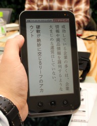 読書端末として、現時点で本機で表示できるのはXMDF/TXT/PDF形式のみ。ただし今後、TSUTAYA GALAPAGOSストアでの取り扱いフォーマット拡充に合わせ、対応フォーマットが拡充される可能もある。