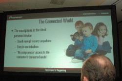 Pioneer Electronics USAのカーエレクトロニクスディヴィジョン・マーケティングディレクターであるTed Cradenas氏は、「スマートフォンは理想的なパーソナルデバイスである」と語った上で、「サイズが小さすぎることに加え、インターフェースを操作するためには常に画面を確認する必要がある」と、車載用として活用する際の欠点も指摘。「安全面を配慮した上で、スマートフォンの利便性を車載用として実現しなければならない」と述べた。