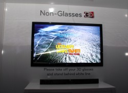 他メーカーが続々とアナウンスしている大画面の裸眼3Dテレビ。LGも大型の試作機を展示していた。パネルデバイスの種類や3Dの方式、解像度などは全て非公表で、市販化の予定も現在のところ決まっていないという。