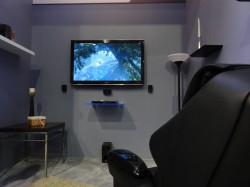 リビングやベッドルームなど、それぞれ生活シーンを想定した空間にVIERAを中心としたホームシアターが設置されている。水平方向だけでなく垂直方向の表現も高めたという新開発のサラウンド技術「Cinema Surround plus」を搭載したシアターシステムを中心に展示。BTT-770はトールボーイスピーカーを中心としたセットでWiFi対応、iPodドックも付属。リアスピーカーはワイヤレス。プレーヤー部はBlu-ray 3Dに対応する。BTT-370とBTT-270はそれをさらにコンパクトにしたタイプ。HTB-520はバータイプのフロントサラウンドシステムで、サブウーファーをワイヤレス接続できる。