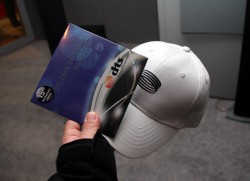 ブースの中央にシアタールームを用意。11.1chの「DTS Neo:X」デモなどが行われ、来場者にはDTSのデモ用オリジナルBDソフトと、DTSのマークが刺繍されたキャップが配られた。