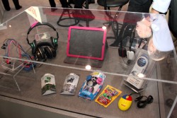 マクセルは、日本でもおなじみの光ディスクメディアやiPodスピーカーなどはもちろん、国内では未展開の製品も多数出展していた。